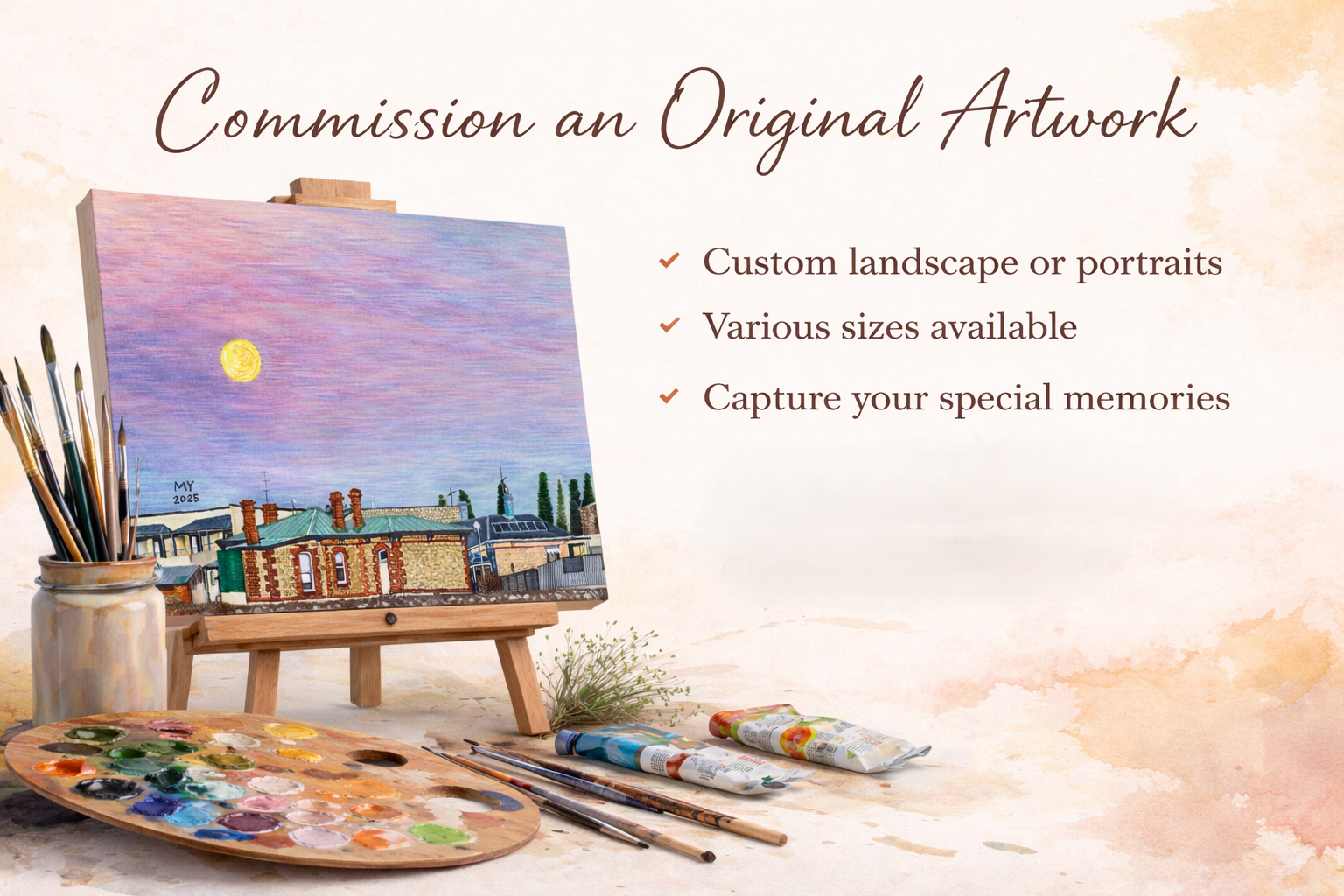 If you're interested in getting a unique, one-of-a-kind original artwork to capture your memories, complete the form with a few details about your preferences. I'll review and get back to you within 48 hours.