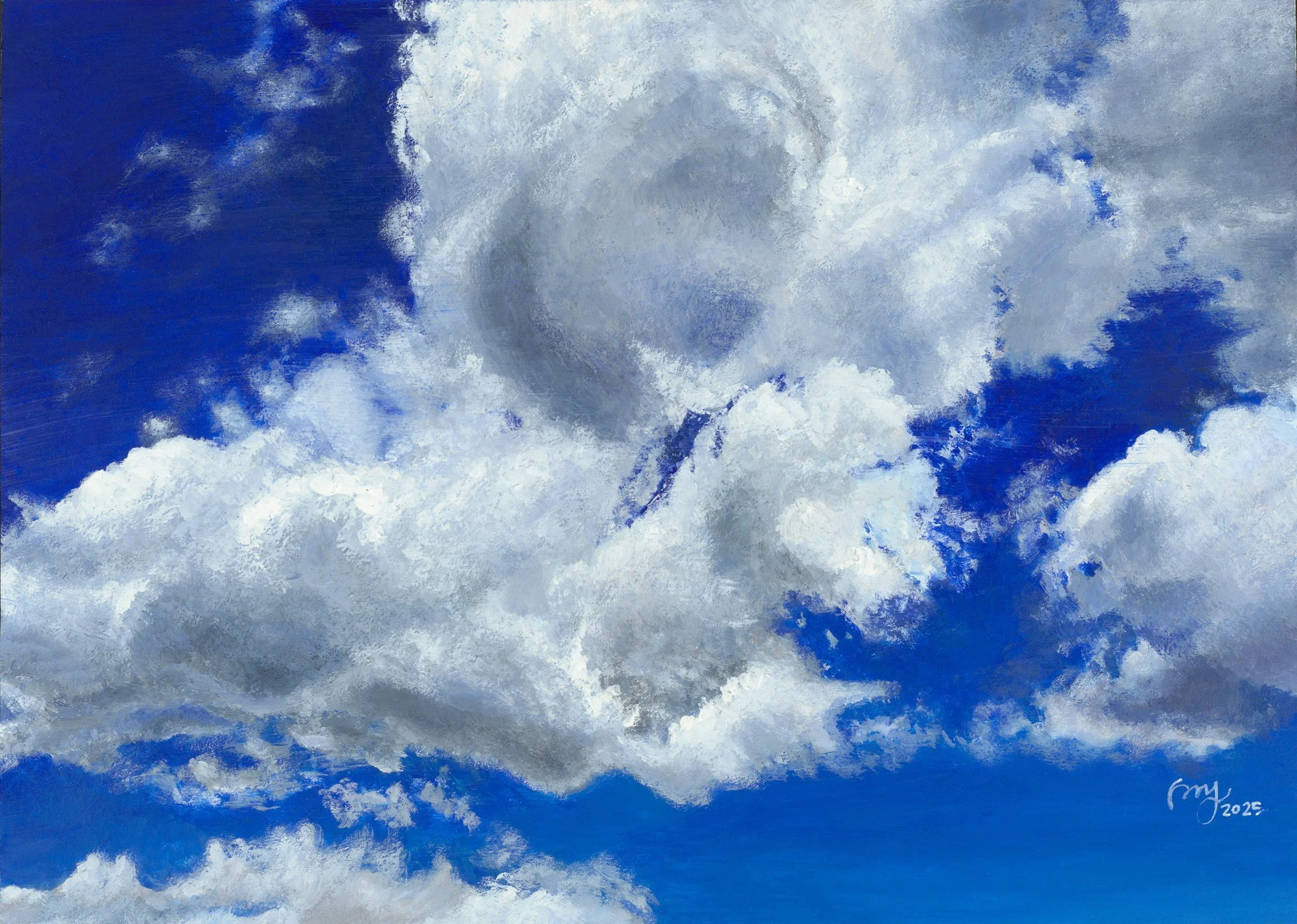 This piece was inspired by a clear day on Kangaroo Bay of Tasmania, watching clouds drift across the open sky. The soft blues and shifting shapes reminded me of how grounding it can feel to just stop and look up for a moment.