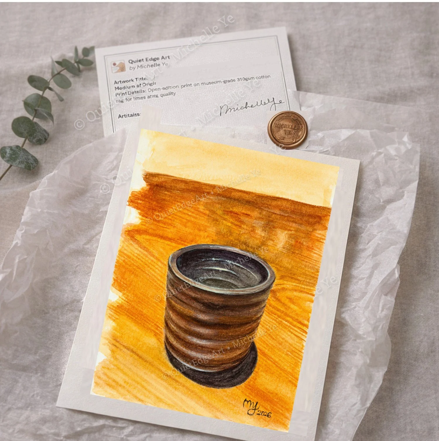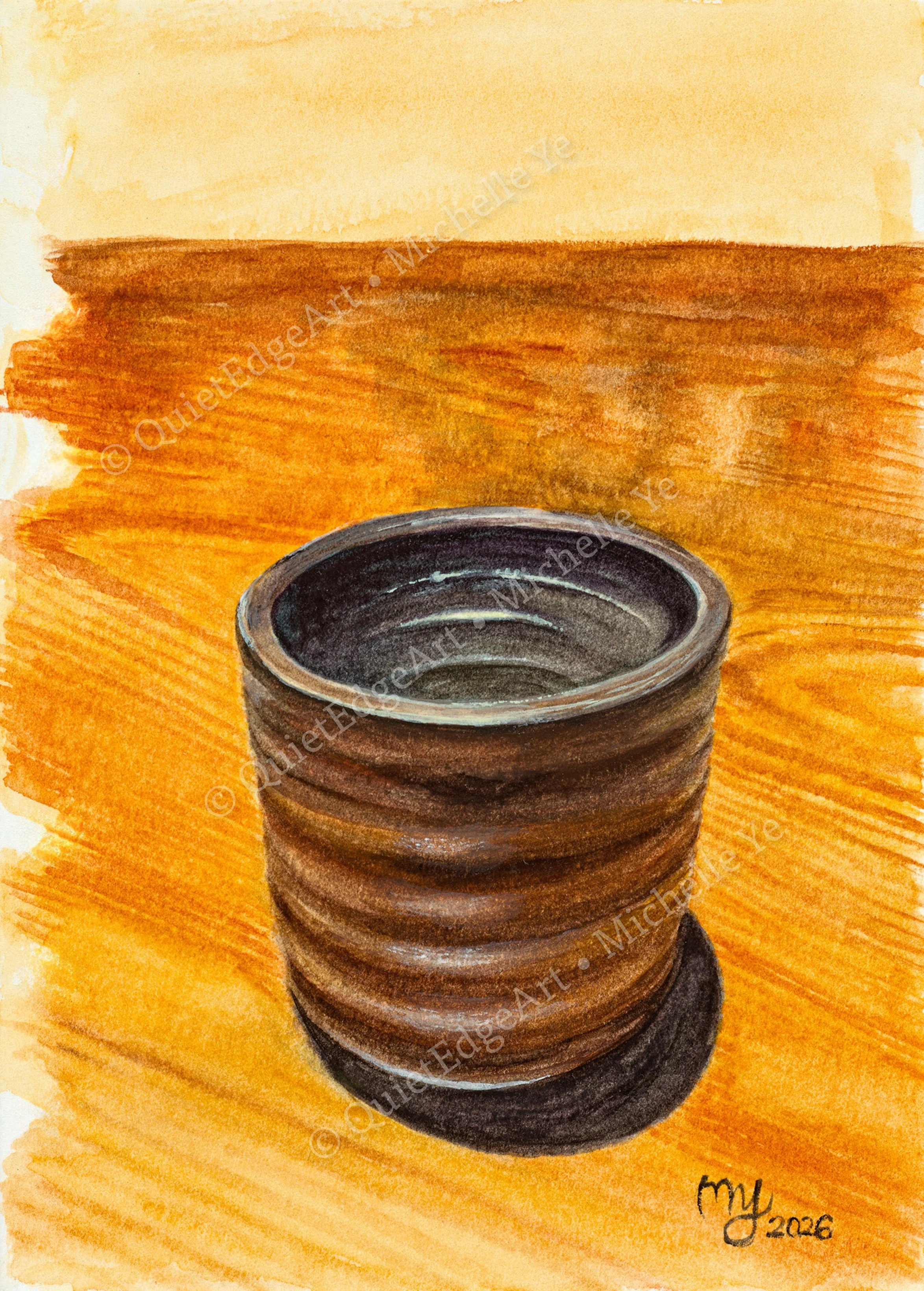 A small watercolour still life of a Japanese cup. It’s a simple piece, focused on the shape, pattern, and the way light falls across the surface. Being a miniature, it’s quite intimate - something you have to get a bit closer to really see. I liked keeping it minimal and letting the cup speak for itself without too much around it.