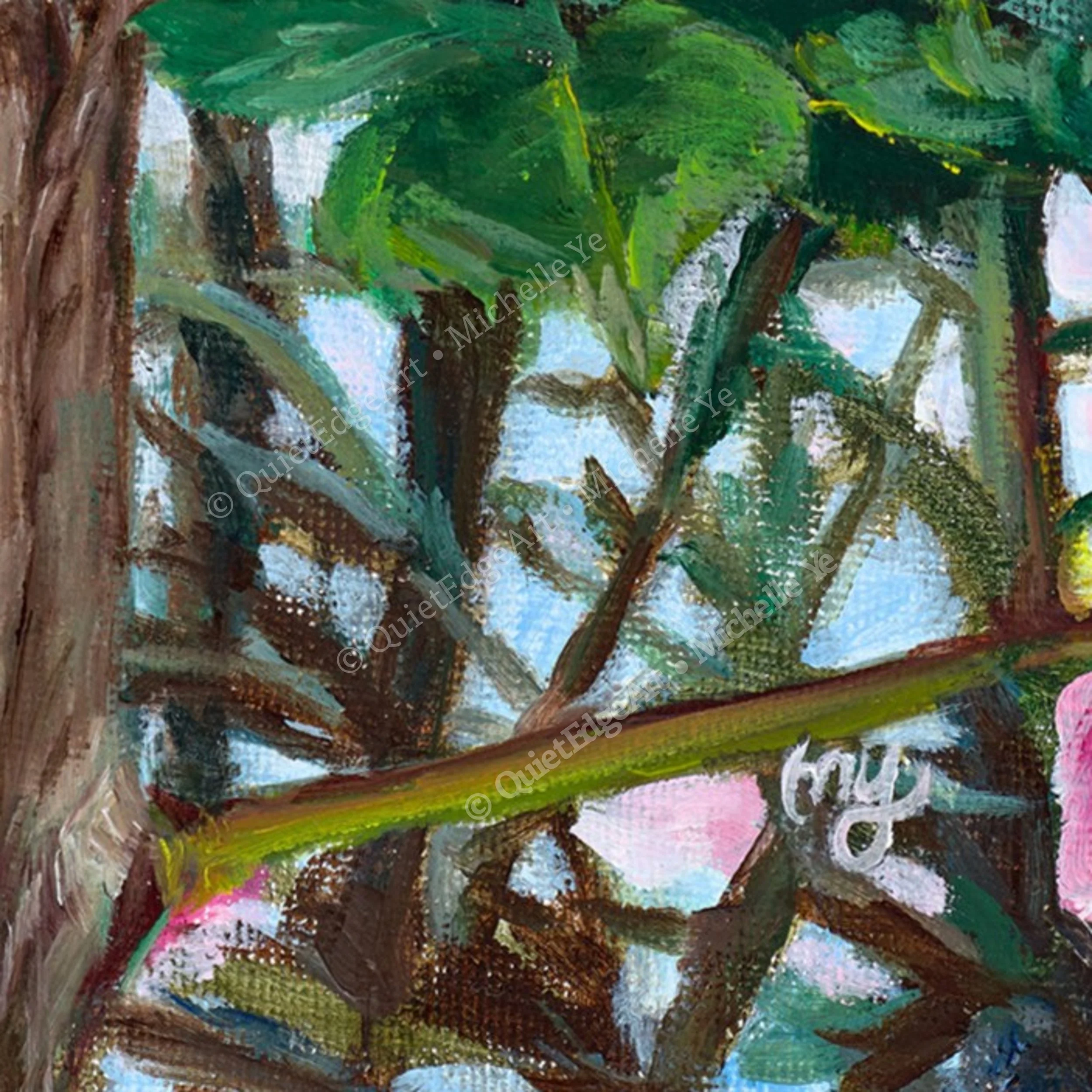 Michelle Ye is a Tasmanian artist inspired by quiet places - coastlines, hills, open skies, and trees - and the stillness they hold. Working with oil, gouache, markers, and other evolving media, she paints with a sensitivity to light, form, and space, capturing the gentle presence of the natural world.